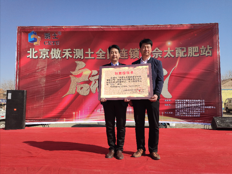 12月16日,北京傲禾鄂伦春测土配肥中心火爆开业,傲禾测土总部培训总监出席开业庆典并向配肥中心总经理付白授发加盟授权书与技术战略合