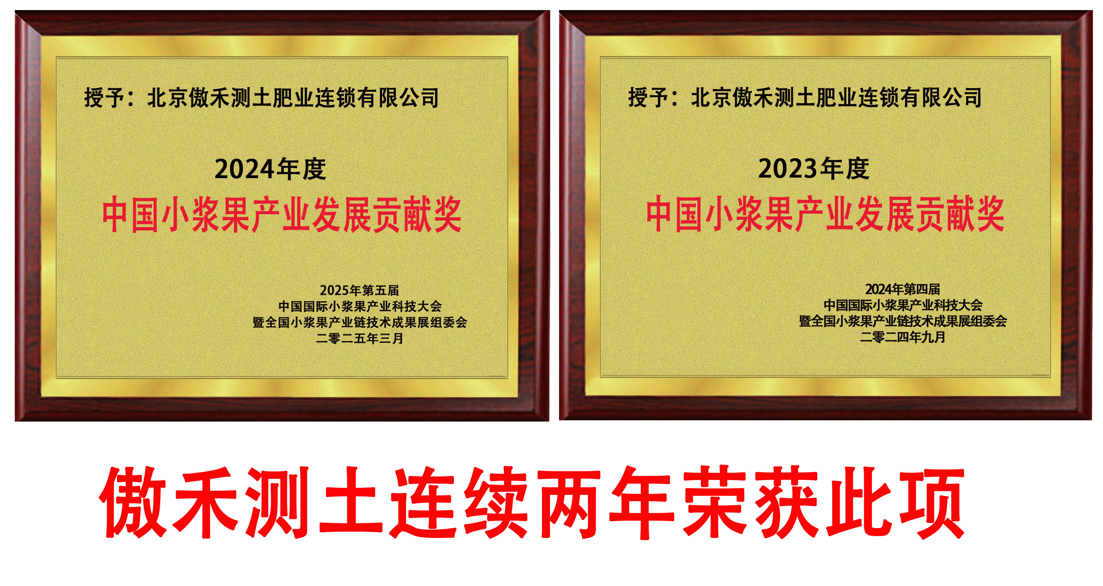 在刚结束的2025年第五届中国国际小浆果产业科技大会暨全国小浆果产业链技术成果展上,北京傲禾测土获得“2024年中国小浆果产业发展贡献奖”,这是北京傲禾傲禾测土继去年荣获“2023年中国小浆果产业发展贡献奖”之后,连续两年荣获此奖项。