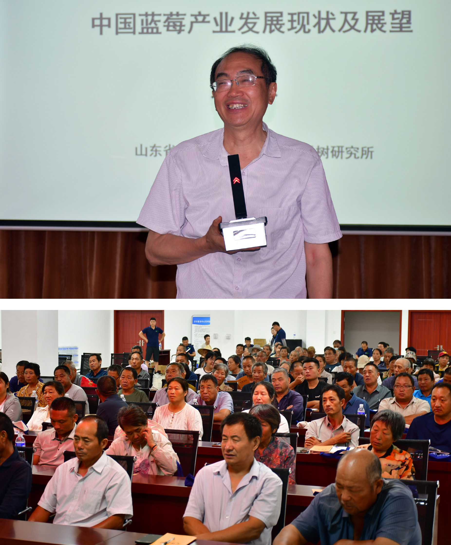 本次培训会议,特别邀请山东省果树研究所首席专家/二级研究员/泰山学者刘庆忠、临沭县农业农村局农技推广站长王朋峰、北京傲禾测土总经理杨祥岭、云南美莓农业科技有限公司技术总监/蓝莓促早专家王林善、北京傲禾测土技术总监/高级农艺师王永峰等专家和领导出席会议,来自临沭县辖区的二百余名莓农种植户参加培训学习。